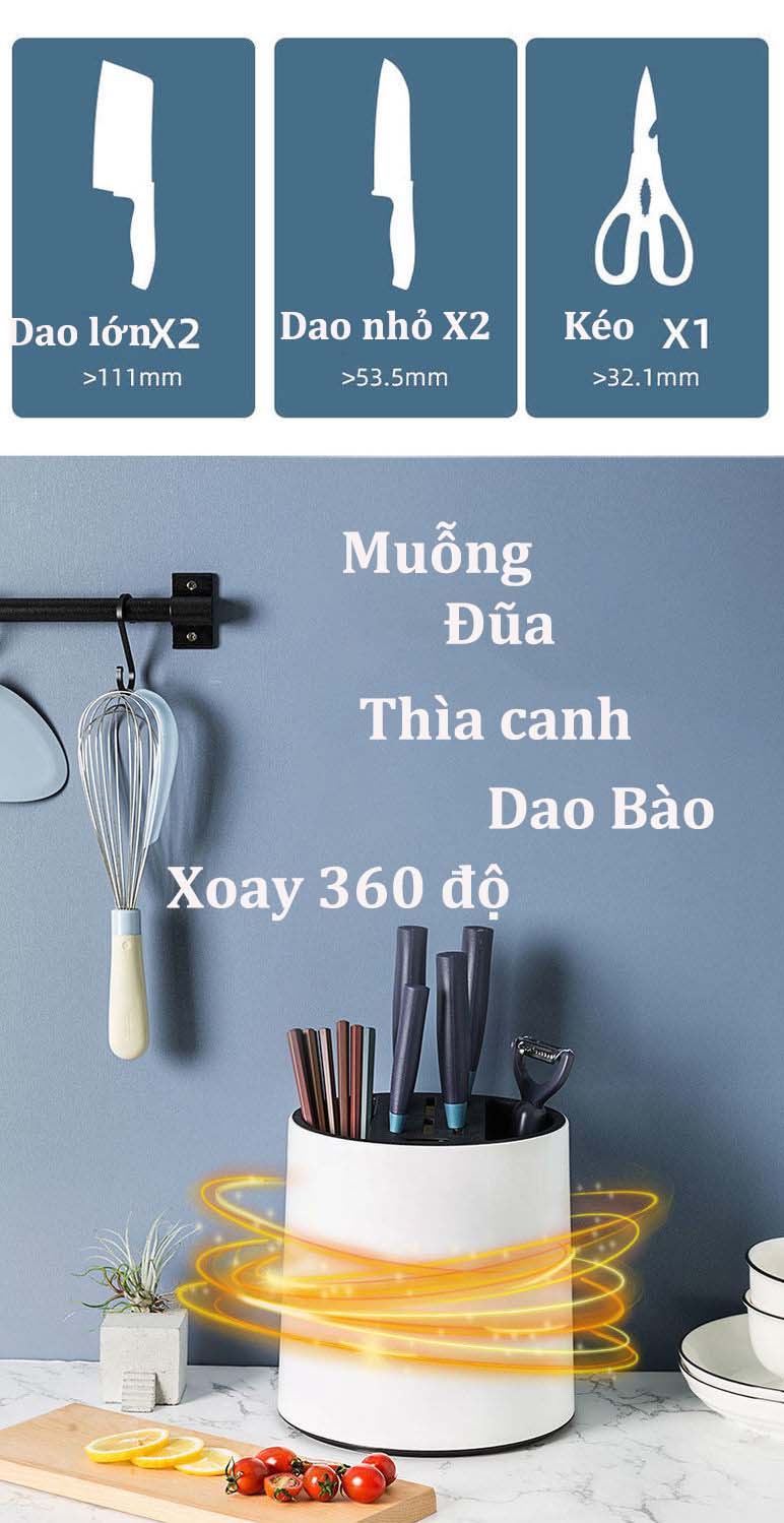 Kệ đựng đũa muỗng dao đa năng có thể xoay 360 độ