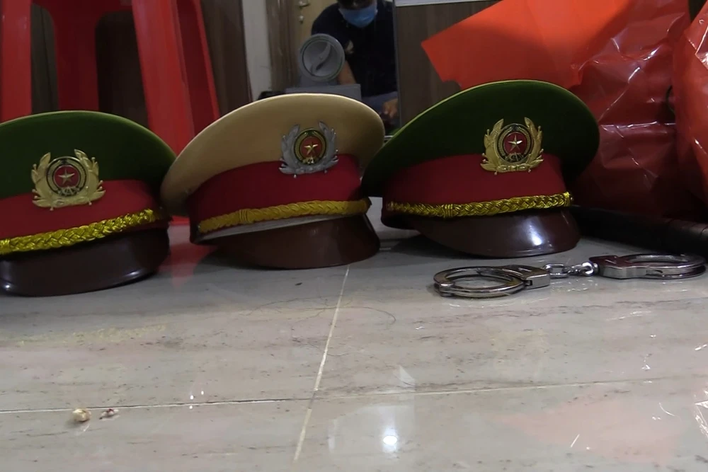 Trang phục CAND được Tú đặt mua trên mạng về rồi phảo tin minh là công an để dễ dàng lừa đảo. Ảnh: CACC