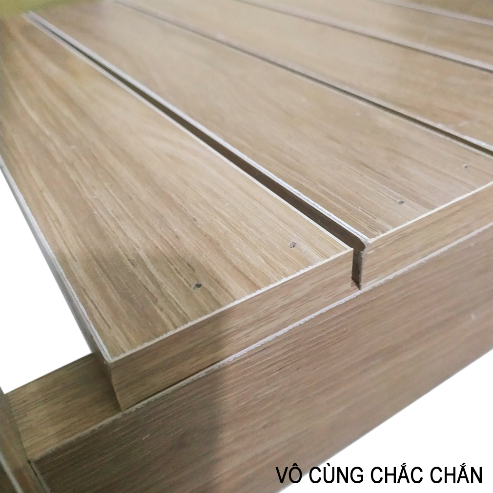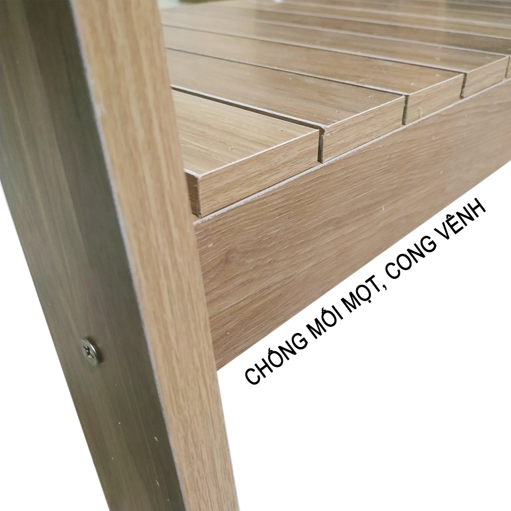 Các thanh gỗ rất dày dặn, chắc chắn, đã qua xử lý mối mọt, cong vênh. Đặc biệt giá để đồ đã được lắp sẵn, bạn chỉ việc ghép các thanh gỗ lại và xoáy vít.