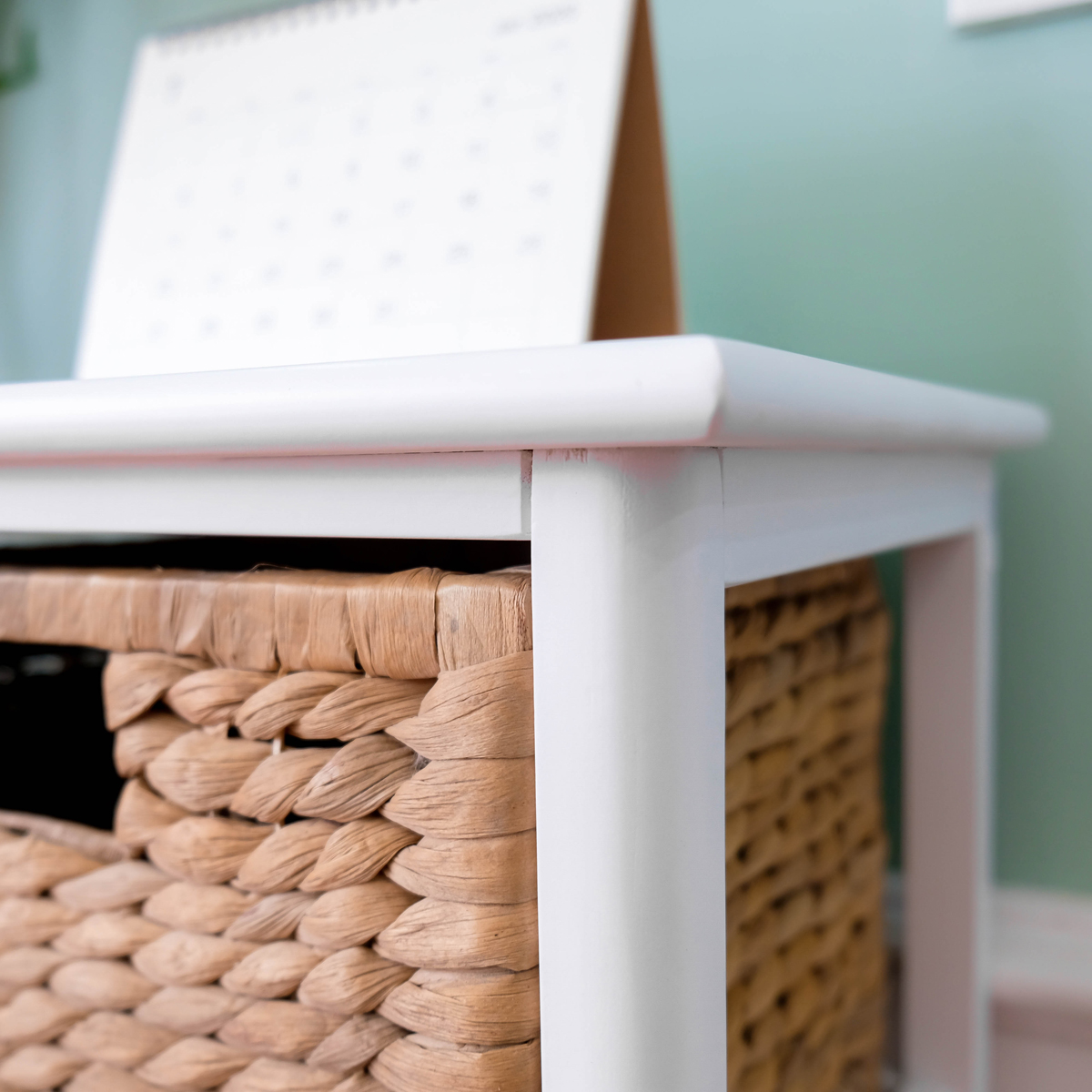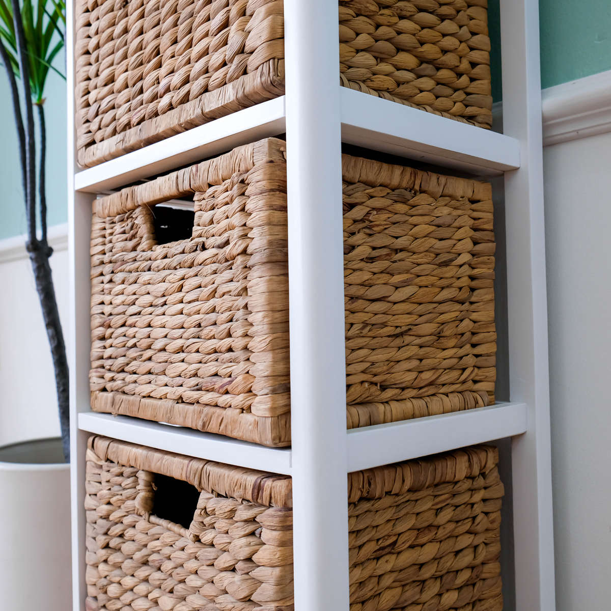 Kệ Gỗ Trắng Kèm 3 Giỏ Lục Bình Thebamboo - Trang Trí Nhà Cửa