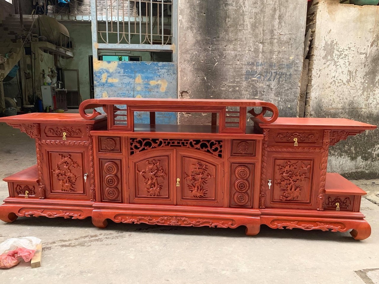 Kệ Vòm để Tivi Và Trang Trí Gỗ Hương đá đỏ. Dài 270cm Cao 260cm ...