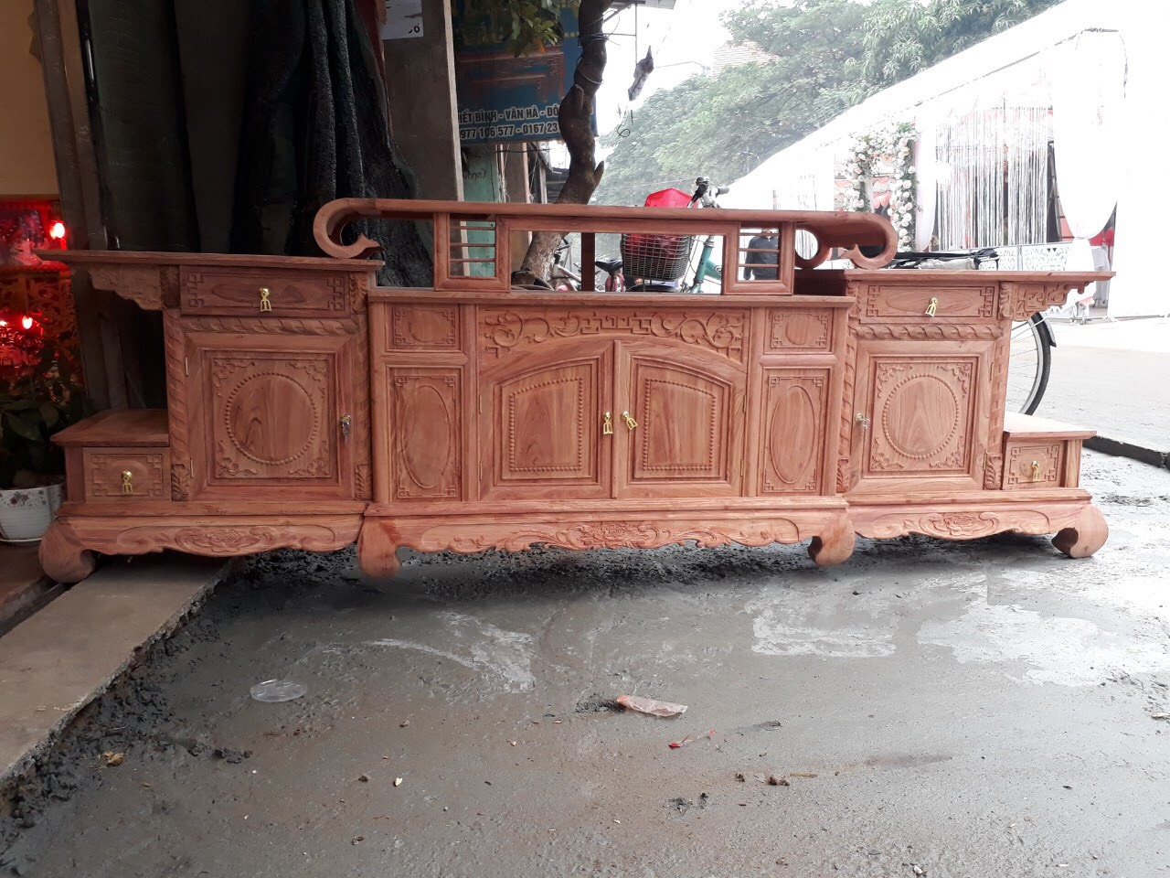 Kệ Tivi Vòm Dài 2m4 Gỗ Hương đá - Đồ Gỗ Tình Sáu