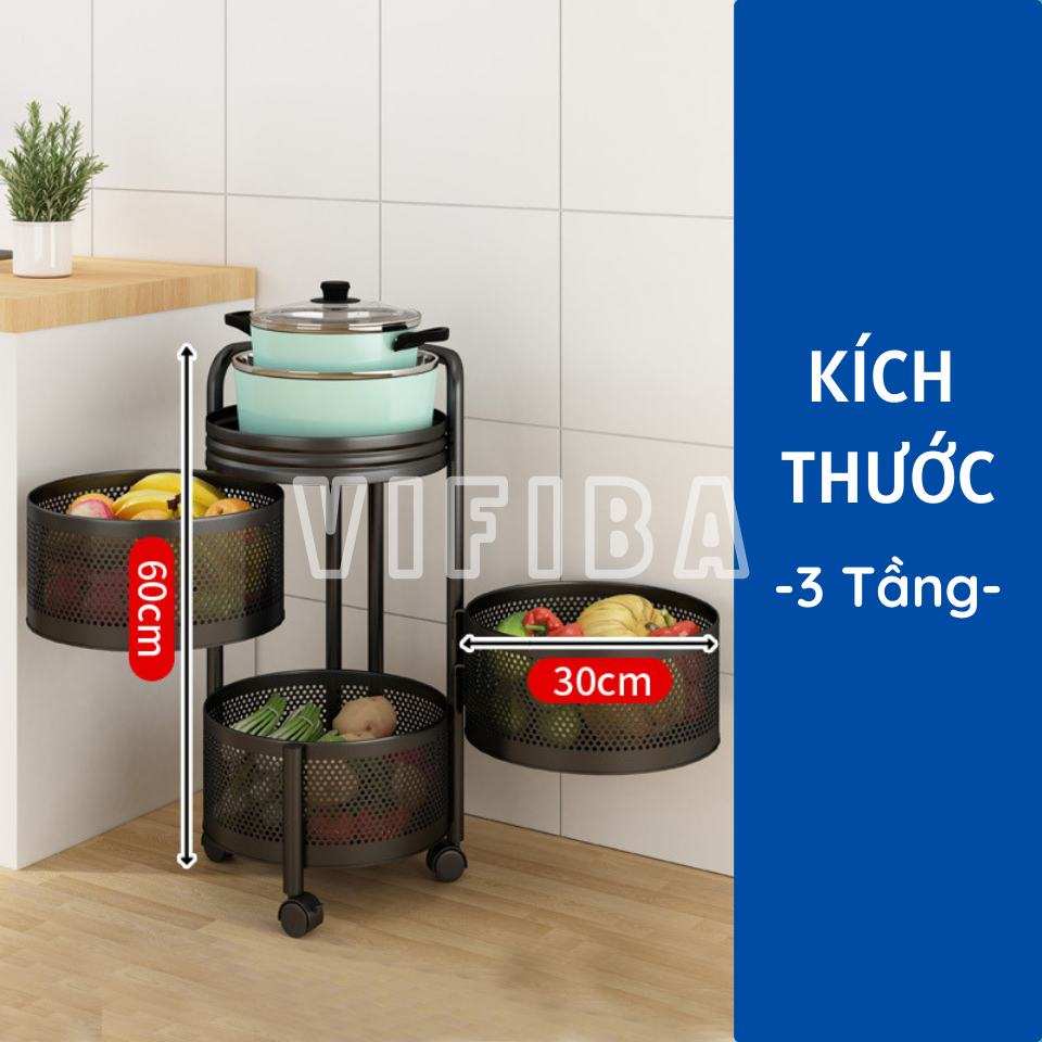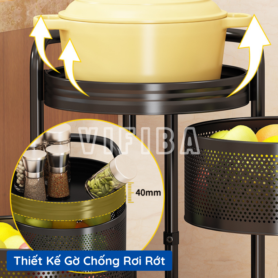 - Kệ Tròn Xoay Nhà Bếp Đa Năng Đựng Rau Củ VIFIBA Hàng Chính Hãng Thép Carbon Không Gỉ Xoay 360