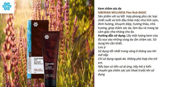 Giảm Đau Nhức Xương, Khớp, Cơ Bắp Hiệu Quả Nhờ Thành Phần Tự NhiênBạn đang tìm kem xoa bóp xương khớp giảm đau nhanh, hỗ trợ vận động linh hoạt, dịu nhẹ và an toàn?Kem xoa xương khớp Siberian Wellness Flex Rub BASIC là lựa chọn hoàn hảo với công thức từ thiên nhiên kết hợp tinh dầu và thảo mộc quý, giúp giảm đau nhức khớp, căng cơ, mệt mỏi sau vận động hay làm việc nặng.