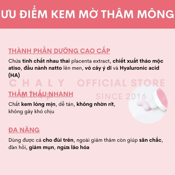 – Ngoài dưỡng giảm thâm vùng mông, còn giúp vòng 3 săn chắc, đàn hồi hơn, giảm mụn và hiện tượng mông chảy xệ, lão hoá