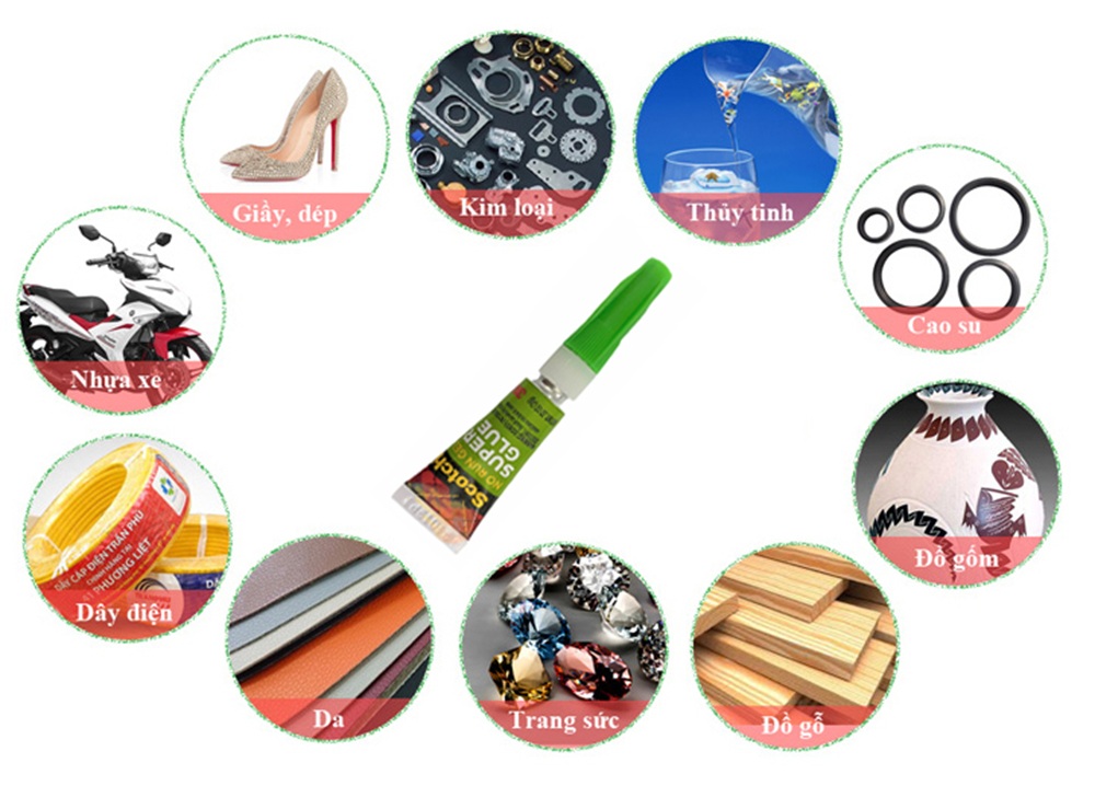 - ☑️ Dán tốt hầu hết các vật dụng cần thiết trong gia đình như giày, dép, tủ nhựa, kim loại, cao su, gỗ, da, đồ gốm, thủy tinh, trang sức...