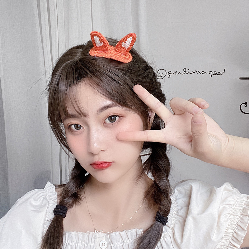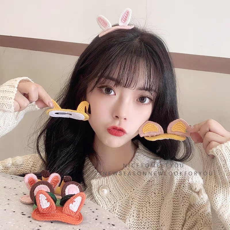 Ưu điểm sản phẩm: Kẹp tóc mái, kẹp tóc len đan hình tai thỏ xinh xắn KT37