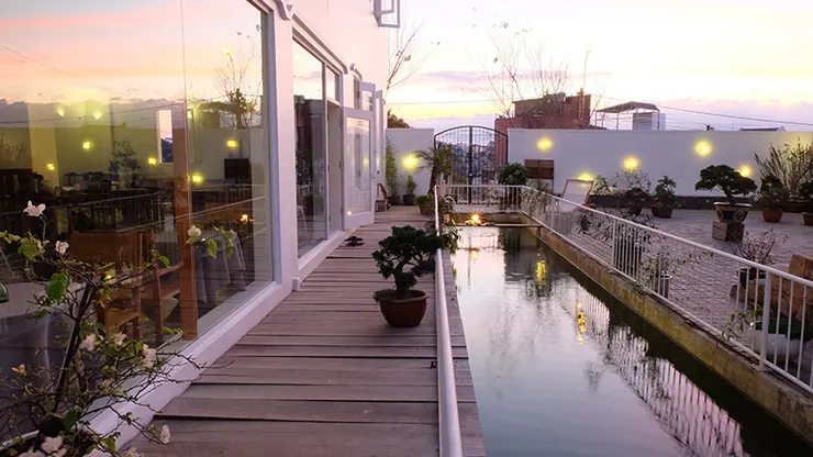 Sân hiên mở cửa phục vụ ăn sáng và ăn trưa, nhìn xuống Hồ Xuân Hương trong không khí trong lành của khuôn viên sân vườn. Thực đơn là sự kết[...]
