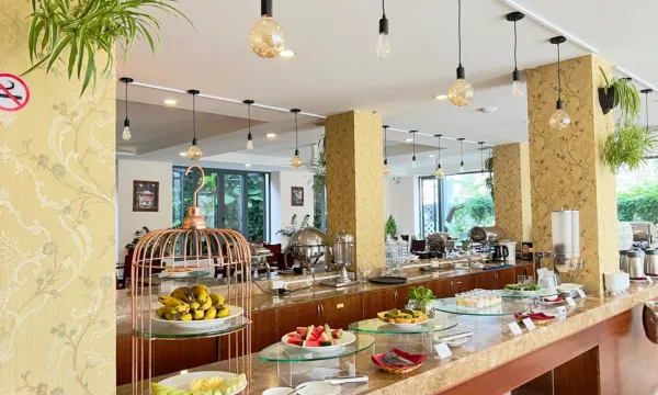 Chính sách cho trẻ emTrẻ em thuộc mọi độ tuổi đều được chào đón tại cơ sở lưu trú này.Bạn có thể mất thêm phí để trẻ em sử dụng giường có sẵn. Hãy thêm số lượng trẻ em đi cùng để nhận được mức giá chính xác hơn.Nôi/cũi và giường phụTất cả các loại phòng đều không thể thêm cũi. Mỗi loại phòng có chính sách về giường phụ khác nhau. Vui lòng tham khảo chính sách của loại phòng liên quan.Bữa sángGiờ mở cửa[Thứ 2 - CN] 06:30-09:30 Đang Mở| Tuổi | Phí |