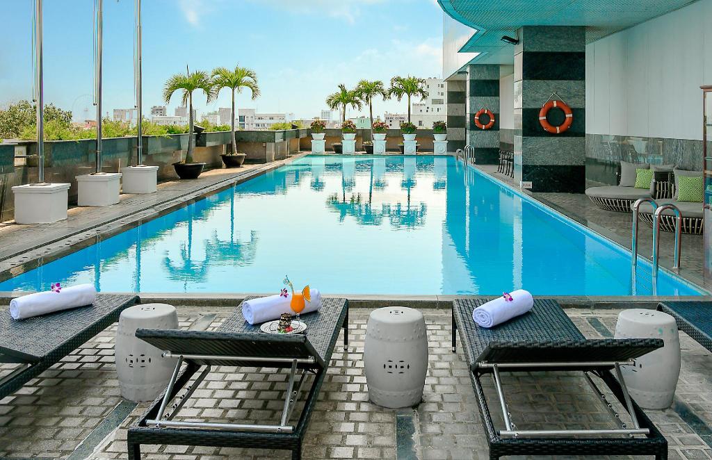 Nằm ở tầng 5 khách sạn với hồ bơi diện tích 100m2, hồ bơi ngoài trời với không gian thoáng đãng, phục vụ các món ăn nhẹ và nước trái cây thơm mát của miền nhiệt đới. Hãy thả mình xuống làn nước trong xanh ngọc ngà, phóng tầm mắt ngắm nhìn bầu trời Đà Nẵng mênh mông và tạm quên đi những mệt mỏi của cuộc sống hàng ngày.