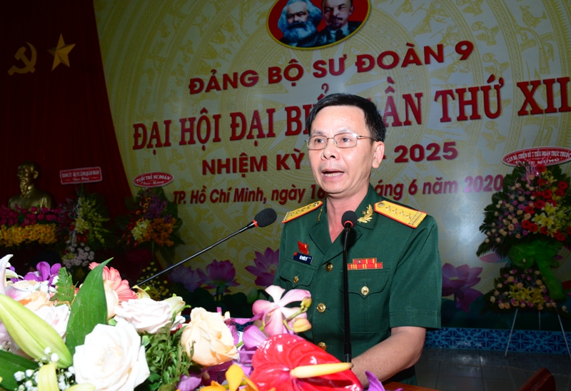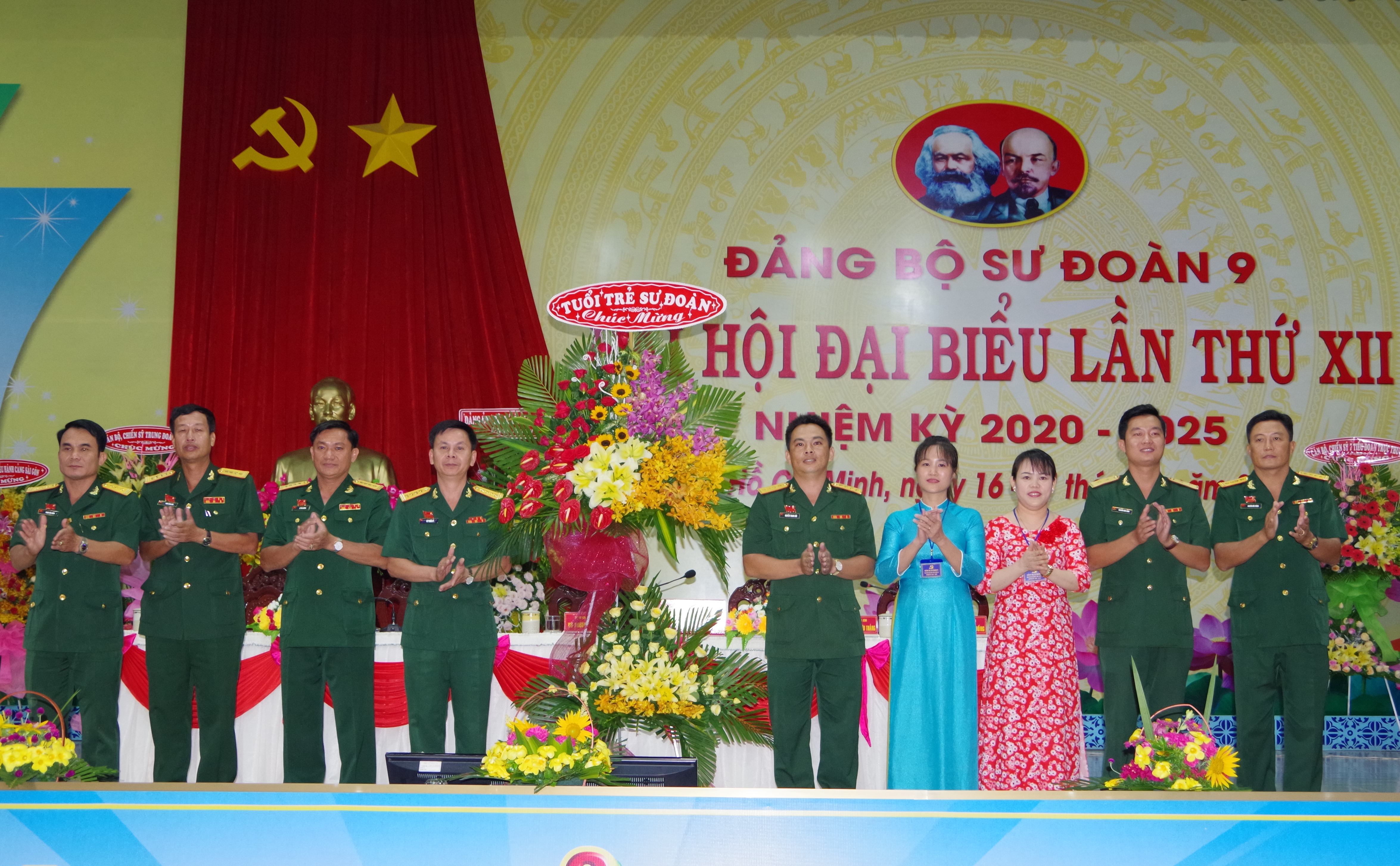 Đại tá Võ Phước Vỹ, Bí thư Đảng ủy, Chính ủy Sư đoàn 9 phát biểu khai mạc đại hội. 5 năm qua, Đảng bộ Sư đoàn lãnh đạo đơn vị thực hiện nghiêm túc, hiệu quả các chỉ thị, hướng dẫn của cấp trên về công tác xây dựng Đảng và phương châm, tư tưởng chỉ đạo của Đảng ủy, Bộ Tư lệnh Quân đoàn “Một tập trung, hai thường xuyên, ba khâu đột phá, bốn cùng bộ đội, xây dựng đảng viên 5 tốt”. Các cơ quan, đơn vị tích cực đổi mới, nâng cao chất lượng sinh hoạt Đảng, kiện toàn cấp ủy các cấp; tăng cường công tác kiểm tra, giám sát, duy trì nghiêm kỷ luật Đảng. Chất lượng toàn diện của tổ chức Đảng và đội ngũ đảng viên ngày một nâng lên. Hằng năm, Đảng bộ Sư đoàn có trên 90% tổ chức cơ sở đảng đạt trong sạch vững mạnh; gần 94% đảng viên hoàn thành tốt và xuất sắc nhiệm vụ. Trong nhiệm kỳ, có 139 tổ chức Đảng, 546 đảng viên được khen thưởng.