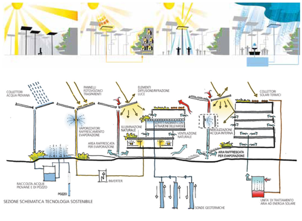 Không gian bao che kiến trúc là vùng không gian ngăn cách không gian kiến trúc với không gian đô thị bên ngoài. Đây là vùng không gian xung quanh và lân cận công trình, có ảnh hưởng đáng kể đến tiện nghi vi khí hậu bên trong công trình. Không gian này bao gồm các thành phần khác nhau như: Lớp vỏ kiến trúc, không gian đệm, khoảng lùi, cây xanh, mặt đường, vỉa hè…gần sát công trình kiến trúc. Cách thức tổ chức, sắp xếp, liên kết các thành phần này theo một trật tự nhất định có tính đến yếu tố tác động bên ngoài tạo nên các dạng cấu trúc không gian bao che kiến trúc.