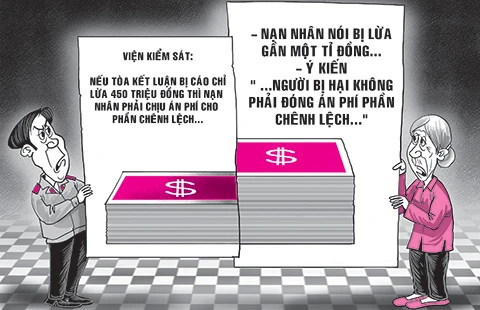Trao đổi với Pháp Luật TP.HCM, kiểm sát viên Ngô Phú Quảng (VKSND TP Đà Nẵng) khẳng định đây là án hình sự nên dù tòa tuyên bị cáo chiếm đoạt giá trị tài sản thấp hơn giá trị tài sản mà người bị hại khai thì cũng không thể buộc người bị hại phải chịu án phí cho phần chênh lệch được. Kể cả trong trường hợp bị cáo được tuyên vô tội, người được cơ quan tố tụng xác định là người bị hại cũng không phải chịu bất cứ loại án phí nào.