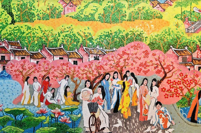 Bức tranh có chiều dài 27m, cao 3,4m, bao trọn bức tường trung tâm dọc theo hành lang cánh đông tầng 2, Nhà ga T2 sân bay Nội Bài tạo thành điểm nhấn nghệ thuật độc đáo - một lời chào ấm áp dành tặng cho hành khách khi đặt chân đến sân bay cửa ngõ của Thủ đô Hà Nội.
