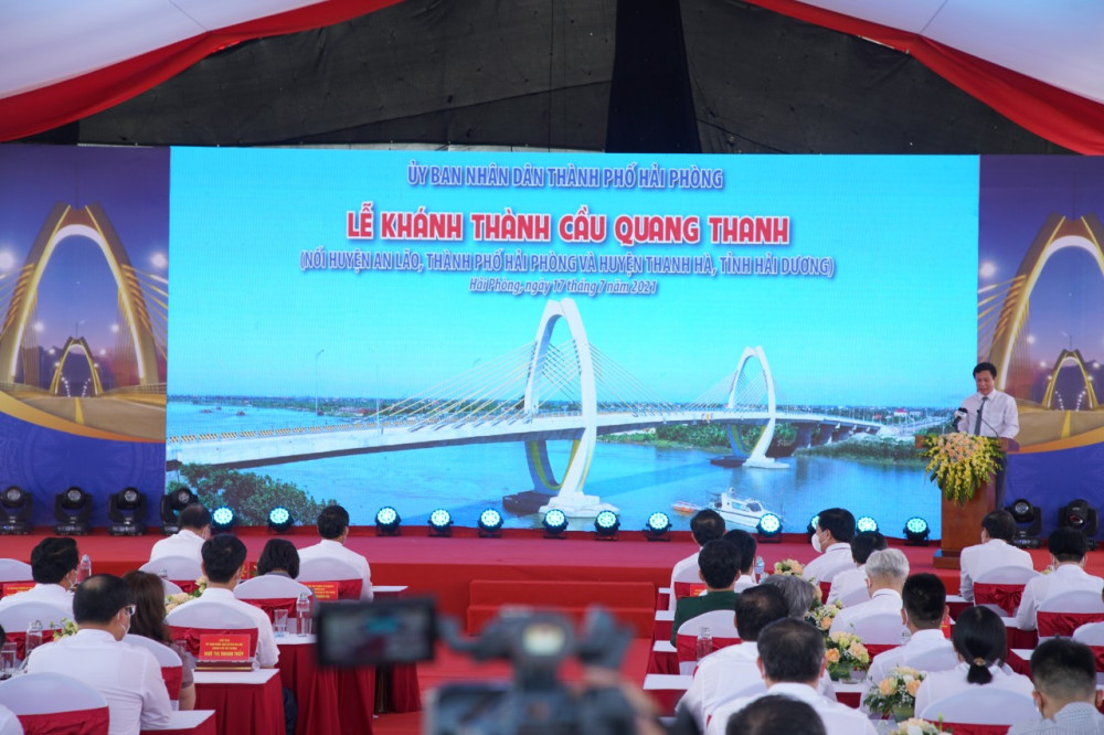 Chiều 17/7, UBND thành phố Hải Phòng tổ chức Lễ Khánh thành công trình cầu Quang Thanh nối huyện An Lão của thành phố Hải Phòng với huyện Thanh Hà của tỉnh Hải Dương qua sông Văn Úc.
