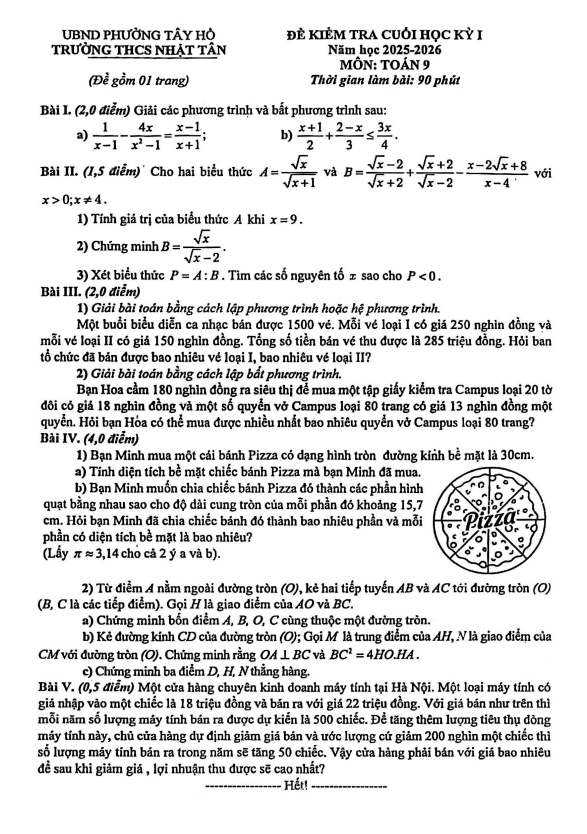 Khảo Sát Chất Lượng Toán 9 Đề khảo sát Toán 9 tháng 11 năm 2025 trường THCS Nhật Tân – Hà Nội