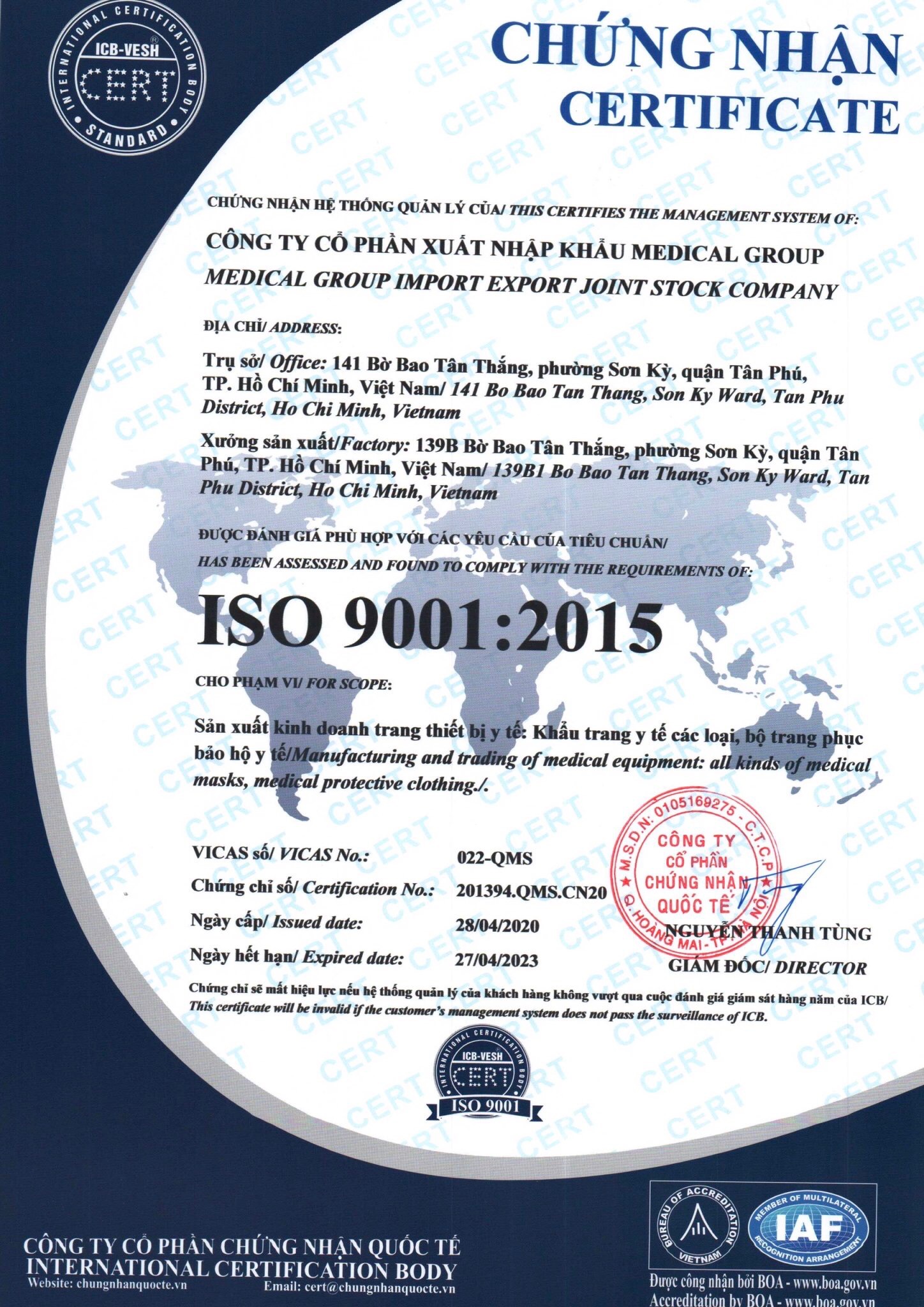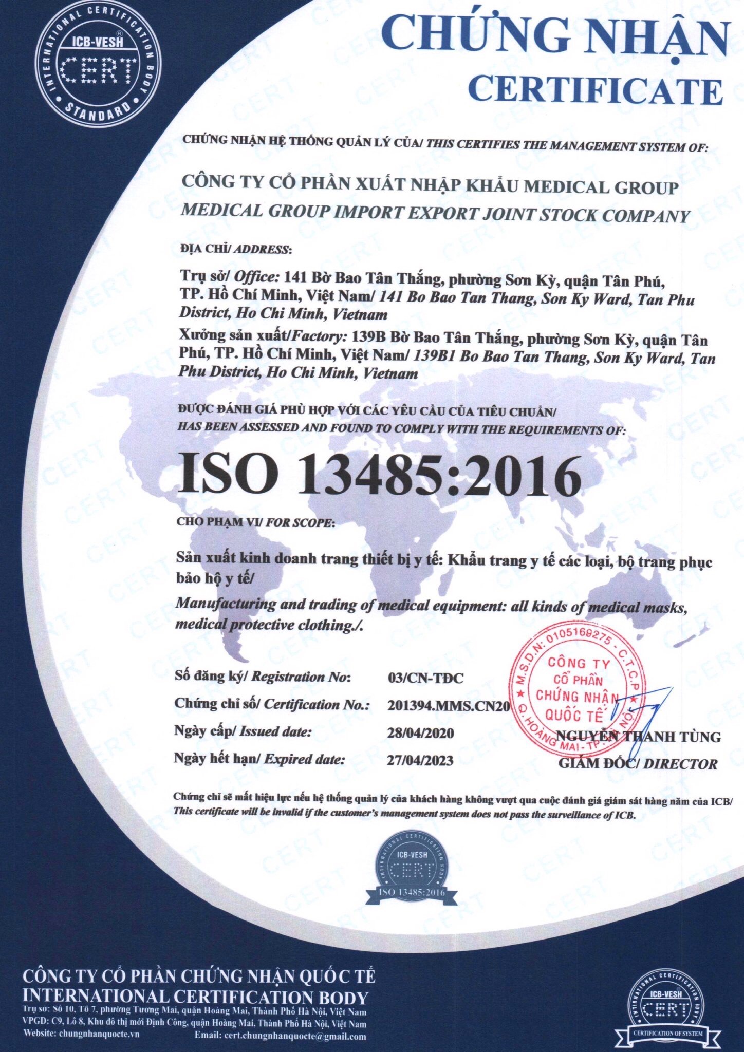 Với 3 lớp cấu thành khẩu trang y tế Medical Group luôn tự hào mang đến cho người tiêu dùng sự an toàn trong môi trường nguy hại. Sản phẩm được cấp chứng nhận bởi Viện Paster, và được cấp chứng nhận ISO 13485 - 2016, 9001 - 2015.
