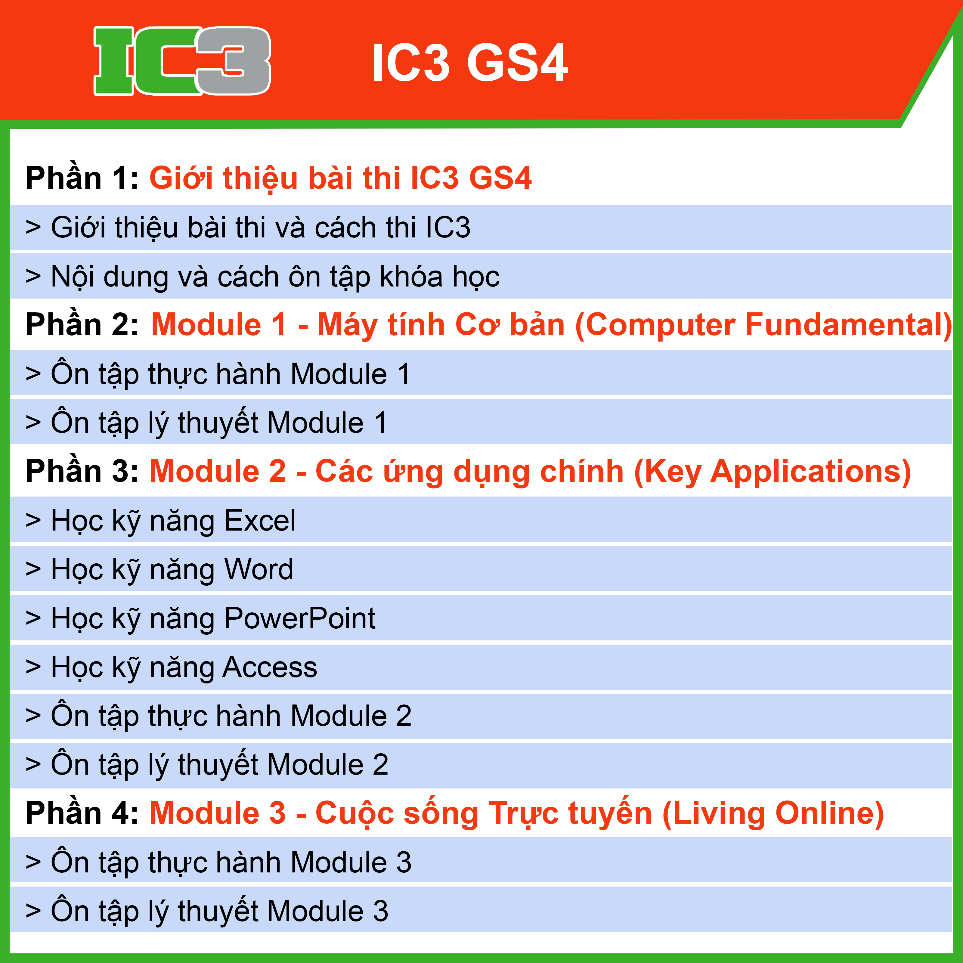 Khóa Học Online Chinh Phục Chứng Chỉ IC3 GS4 Tin Học Cộng - Tiki