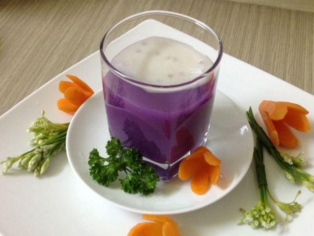 Bước 3: tán nhuyễn phần khoai mỡ đã chín nhờ với phần nước luộc từ vỏ khoai. Tiếp đó là rây lược lấy phần bột mịn nhất, bỏ phần sơ đi.