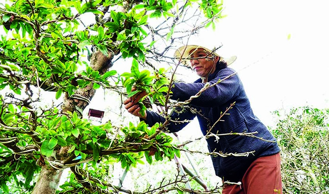 Theo lời kể của ba tôi, cây mai này được ông nội trồng khi ba mới lên bảy, đây là giống mai xứ Quảng, lá xanh, hoa vàng tươi với năm cánh xòe rộng. Tính đến nay cây đã tám mươi lần thay lá, gốc ngày càng to bằng vòng ôm trẻ con, vỏ cây màu xám mốc, thân xù xì, cành vươn cao đón bao mưa nắng cuộc đời. Bên cội mai già, chúng tôi vừa làm vừa nói chuyện râm ran, những cành cây run lên bần bật dưới những đôi tay thoăn thoắt lặt từng chiếc lá, rồi thả xuống đầy gốc. Mỗi chiếc lá đau đớn, quyến luyến rời cành sẽ nhường chỗ cho một bông hoa rực rỡ chào ngày xuân tới. Nếu con người không rứt, cây mai tự vàng lá rồi từng chiếc, từng chiếc rời xa cành nhưng chắc chắn hoa sẽ nở sau rằm tháng Giêng, vẫn còn xuân nhưng không khí Tết đã nguội rồi. Lệ thường, ở quê tôi, cứ đầu tháng Chạp nhà nào có mai đều tranh thủ vặt lá để mai nở kịp đón những đứa con tha hương trở về sum họp. Ngày Tết ngoài “thịt mỡ, dưa hành, câu đối đỏ” còn phải có “cây mai, tràng pháo, bánh chưng xanh”, vì vậy sắc vàng của hoa mai không thể thiếu để tạo nên hương vị Tết Quảng. Có những nhà vườn phải mướn người dù có hơi tốn chút đỉnh nhưng cái nhu cầu thưởng lãm màu của lộc xuân, màu của hương hoa đất trời đầu năm lớn hơn hết thảy.