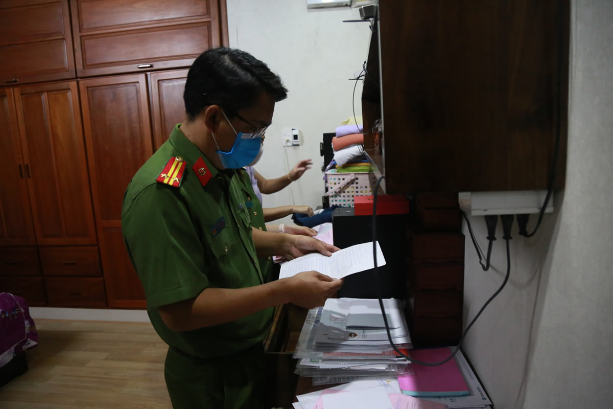 | Quá trình khám xét nhà riêng bà Châu, cơ quan Công an thu giữ một số giấy tờ liên quan. |