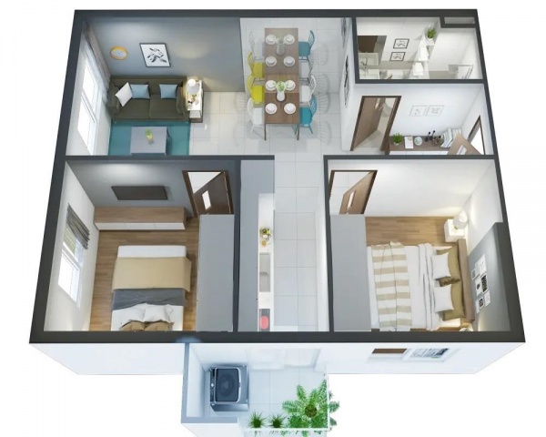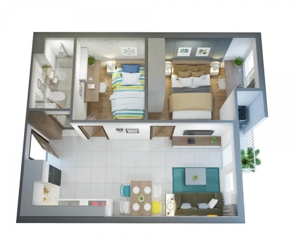 * Căn hộ điển hình: 48,43 – 56,53 m2 có thiết kế gồm 1-2PN