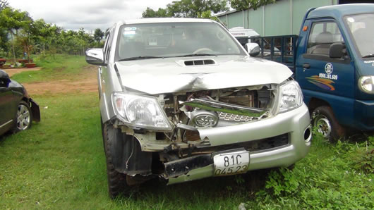 | Chiếc ô-tô do Long "xích" điều khiển gây TNGT. |
