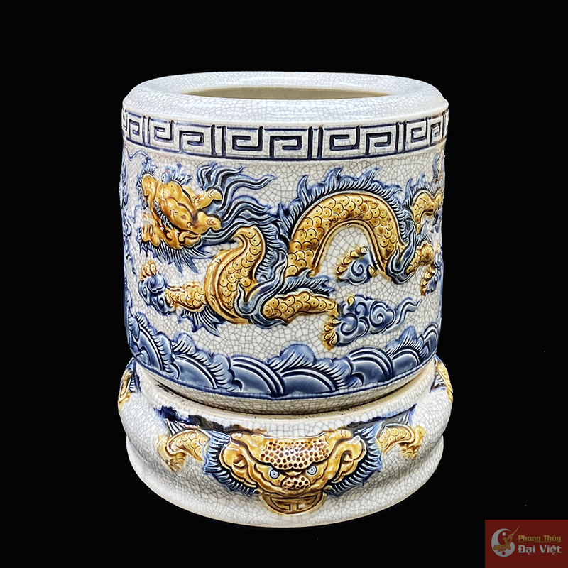 Bát Hương Vẽ Rồng Phượng Kích Thước 18 Cm