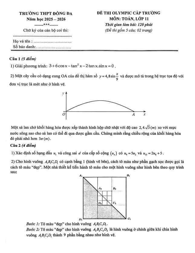 Đề thi Olympic Toán 11 năm 2025 – 2026 trường THPT Đống Đa – Hà Nội 19/02/2026