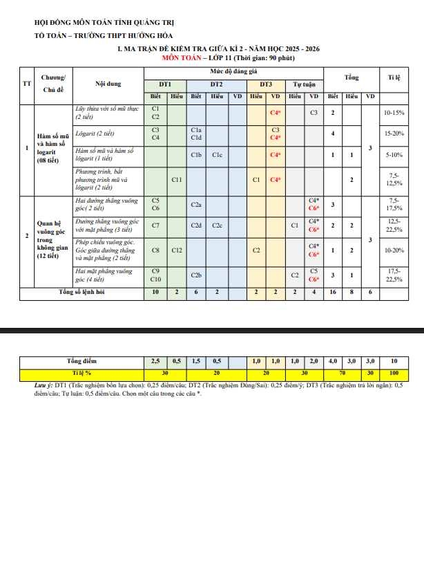 Đề cương giữa kì 2 Toán 11 năm 2025 – 2026 trường THPT Hướng Hóa – Quảng Trị 25/02/2026