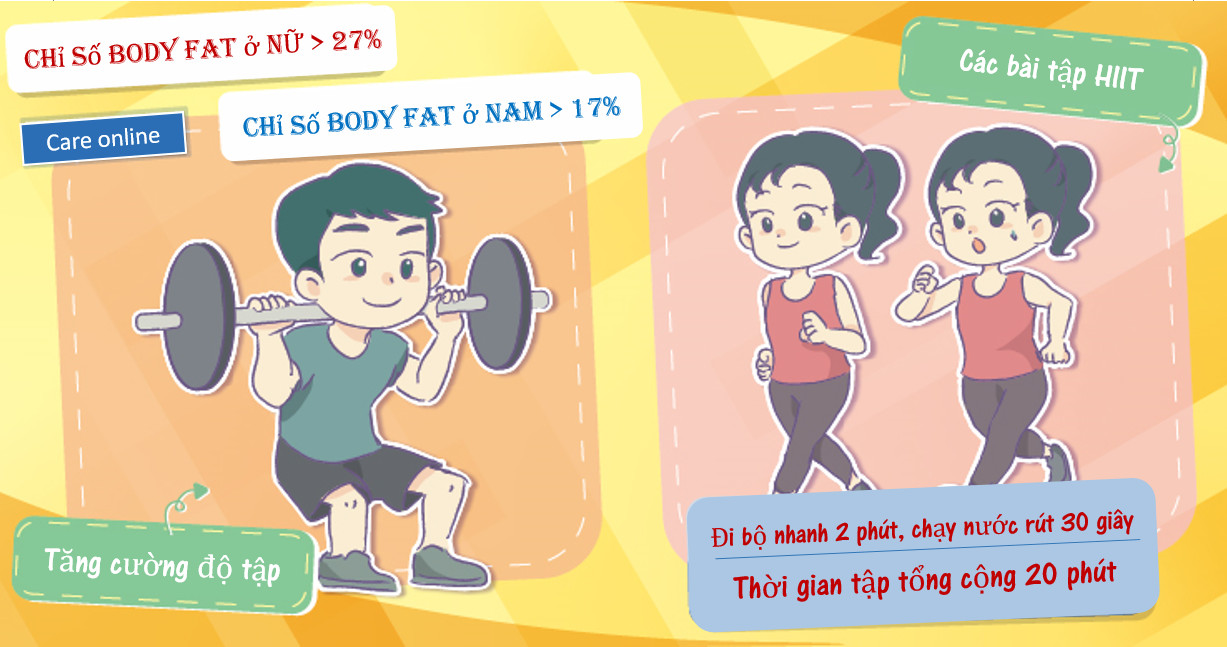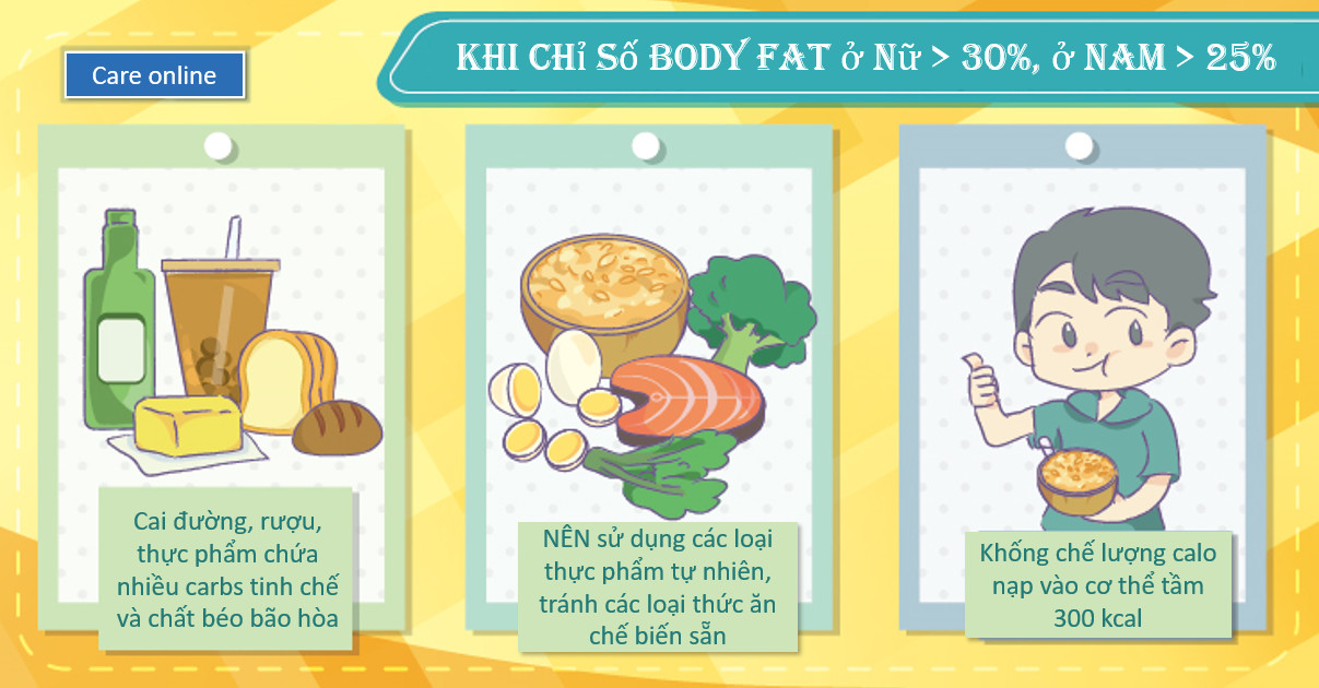 Tiếp theo sau đây, chúng ta hãy cùng tìm hiểu việc điều chỉnh chế độ ăn uống và áp dụng phương pháp thể thao vào từng giai đoạn khác nhau của cơ thể trong việc giảm chỉ số body fat của cơ thể nhé!● Giai đoạn béo phì