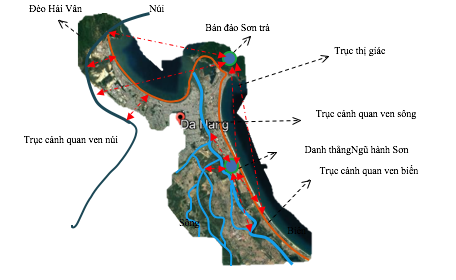 Trong sơ đồ định hướng phát triển không gian KTCQ của Đà Nẵng đến năm 2030, cảnh quan toàn TP được chia thành 5 vùng cảnh quan, chủ yếu dựa trên sự phát triển các khu vực chức năng, chưa chú trọng tới tính liên kết hệ thống của các thành phần cảnh quan trong các vùng cảnh quan và giữa các vùng cảnh quan với nhau thông qua sự hình thành các trục và tuyến cảnh quan, trong đó các điểm nhấn cảnh quan sẽ phải được nhìn thấy trên trục này.