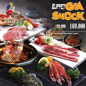 - KingBBQ Buffet là thương hiệu của Redsun - ITI - công ty sở hữu các thương hiệu ẩm thực nổi tiếng như ThaiExpress, Seoul Garden, Capricciosa, Hotpot Story... Là chuỗi thương hiệu đã có 14 nhà hàng trên toàn quốc, King BBQ Buffet nổi tiếng với phong cách Nướng Hàn Quốc, trong đó phải kể đến món thịt bò Mỹ nướng đặc trưng. - Thực đơn phong phú, hấp dẫn với nhiều món nướng Hàn Quốc, tất cả đều được thái lát mỏng đẹp mắt, thấm đều nước sốt đậm đà, thơm quyến rũ. Bên cạnh đó là các món hải sản cũng được lựa chọn kĩ lưỡng. Ăn kèm có rau cuốn và các món panchan. - Công thức tẩm ướp chế biến món ăn được một trong những đầu bếp hàng đầu Hàn Quốc - Park Sung Min có trên 40 năm kinh nghiệm tại Seoul trực tiếp nghiên cứu và chế biến. - Món ăn được nướng trên hệ thống bếp than không khói hiện đại, các món nướng vừa lưu giữ vị ngọt thơm của các món thịt mà không hại cho sức khỏe. - Ngoài món nướng, menu còn có các món lẩu, khai vị, các món nóng và các món truyền thống nổi tiếng của Hàn Quốc, tráng miệng... rất phong phú và đa dạng. - Không gian ấm cúng và thân thiện, quầy Buffet rộng với nhiều đồ ăn phong phú thay đổi theo từng ngày, thích hợp cho các bữa tiệc gia đình hay tụ tập bạn bè, đồng nghiệp hay các nhóm khách đoàn... - MENU THAM KHẢO TẠI ĐÂYĐiều kiện sử dụng