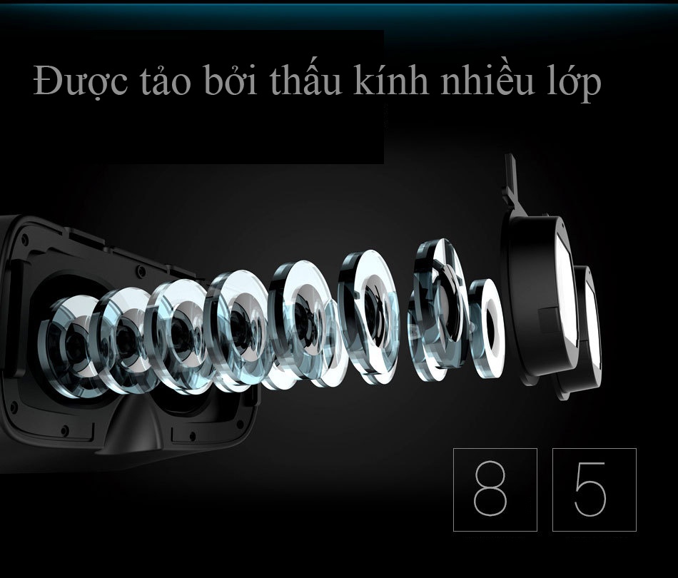 Kính VR Box Version 2 được tạo nên bởi 43 nhóm linh kiện, tổng cộng có đến 59 mảnh ghép được gia công tỉ mỉ, để lắp thành một siêu phẩm hoàn hảo nhất. Đặc biệt, VR BOX II có đến 8 lớp thấu kính, với tác dụng lọc các tần số khác nhau của ánh sáng đi qua ống kính, giảm nhiễu và biểu hiện màu sắc chân thật và rõ nét. Thấu kính thiết kế để đảm bảo an toàn cho mắt, chống hiện tượng mỏi mắt khi sử dụng kính.