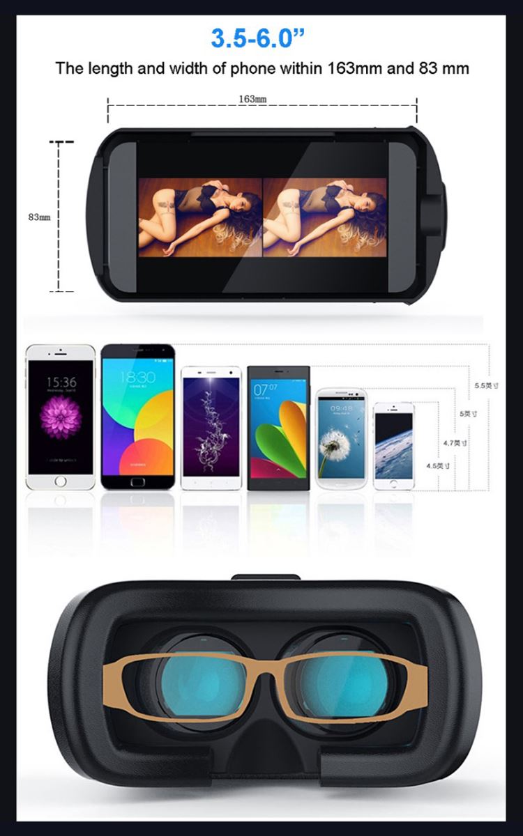 Phần khung bọc xung quanh mắt của kính thực tế ảo Vr Box phiên bản 2 khá rộng phù hợp với mọi loại khuôn mặt, không những vậy, nếu bạn có đang đeo kính thì phần khung này vẫn vừa , bạn không cần tháo kính ra hoặc có thể kết hợp đeo chung đều có thể được. Tất các các dòng điện thoại từ 3.5' đến 6.0' đều sử dụng tốt trên thiết bị VR Box phiên bản 2 này. Đặc biệt với sự xuất hiện đày đặc của các siêu phẩm Smart Phone có màn hình từ 2K đến 4K bây giờ thì hiệu quả mang đến còn tuyệt vời hơn nữa.