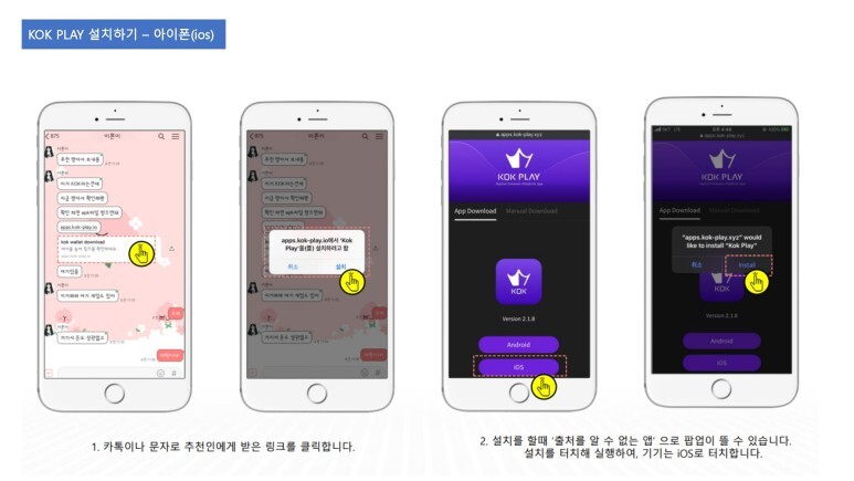 아이폰의 경우 https://api.kok-play.xyz/web/users/regist?lang=ko&ref=udwiojkl