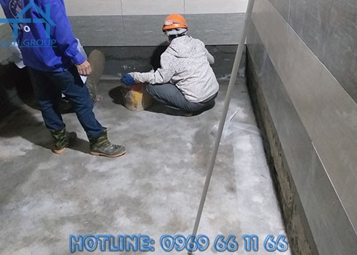 - Dùng nước sạch tạo ẩm bề mặt cần chống thấm trước khi thi công