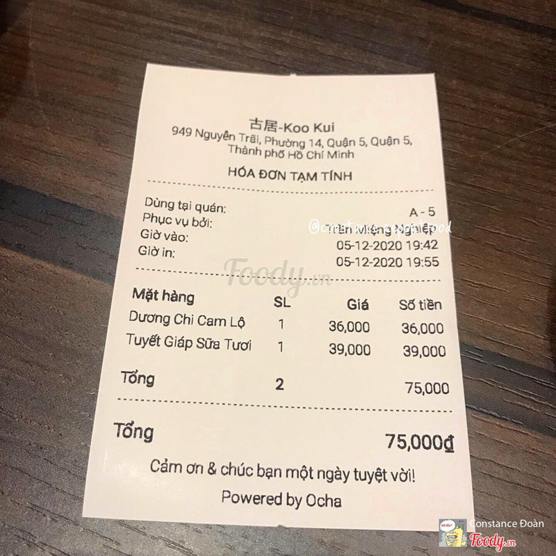 Constance Đoàn đã bình luận bằng iPhone 09/01/2021 01:04:33, 6.4 Ăn chè ở Cổ Cư Koo Kui Desserts - 📌🎯949 Nguyễn Trãi phường 14 quận 5 . 🕰 từ 15:00 nha . 📌 Mình đi hụt quán 1 lần, đến quán tầm 13h nhưng chưa bán, đành đi dìa ))) nay ghé lại quán vào buổi tối, hỏi kĩ ))) quán nằm đoạn Nguyễn Trãi 1 chiều nhen nên xem bản đồ trước khi đi cho chắc ăn nè . 📌 Quán trang trí tông vàng ấm và bật máy lạnh siêu lạnh 😂😂😂 dùng đèn vàng nhiều nhưng mình cứ cảm giác bị tối tối sao ấy. Mình chọn 1 Tuyết Giáp Sữa Tươi và 1 Dương Chi Cam Lộ . 🍶 Tuyết Giáp Sữa Tươi ở đây được nấu và làm lạnh sẵn nên mang ra nhanh lắm. Vị ngọt thanh, mát, dễ ăn. Nhưng mình vẫn thấy thiếu mất vị béo nhẹ của sữa, cái này thì bên Ái Huê làm tốt hơn. Nói chung vẫn có thể đánh giá tốt . 🥭 Dương Chi Cam Lộ thì mình gọi cho mẹ ăn thử. Nó là Chè Xoài nấu với bột báng, nước cốt dừa, có bưởi đỏ ở trên. Ăn là lạ, không quá ngọt nhưng nhanh ngán 😢 mình thích vị thanh mát của Tuyết Giáp Sữa Tươi hơn món này, chắc là hông hạp khẩu vị của mình. Điểm cônng là mình ghét mùi xoài chín kinh khủng nhưng món chè này rõ là có xoài chín nhưng hương vị hoà quyện với các nguyên liệu khác không gây khó chịu cho mình, chỉ là nhanh ngán hoai . 💰 Giá chè từ 39k, ở đây có cả 1 số món mặn, trà sữa nữa. Giá so với các hàng chè Tàu khác không quá cao, chất lượng tương đối, có thể tụ tập bạn bè luôn. Chú bảo vệ cũng dễ thương nữa . 📌 Sẽ trở lại thử mấy món khác của quán ------- Follow hagstag #constancereportfood để đi ăn cùng Constance nhé -------- #Constancefooddiary #constancefood #foodreview #foodporn #foodstagram #instafood #foodaholic #foodholicvn #foodie #foody #foodyvn #foodysaigon #foodyhcm #grabfood #baemin #baeminvietnam #nowvn #diadiemanuong #ansapsaigon #riviu #thanhriviu #riviu #cocu #kookuideserts #chè #thanhriviuquan5 #dessert #sweet #sweets ...Xem thêm