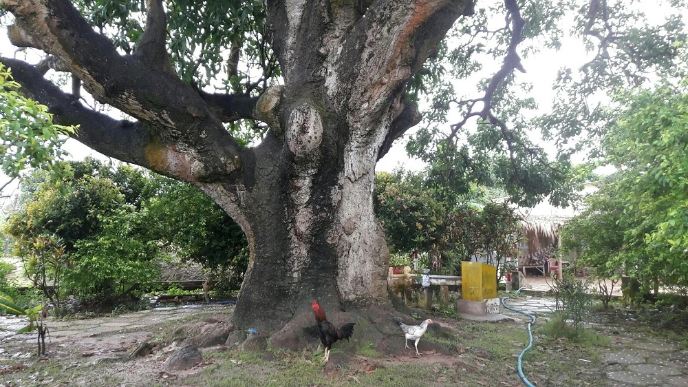 Gốc xoài lớn đến bốn người ôm không hết. Ảnh: NGÂN HÀ
