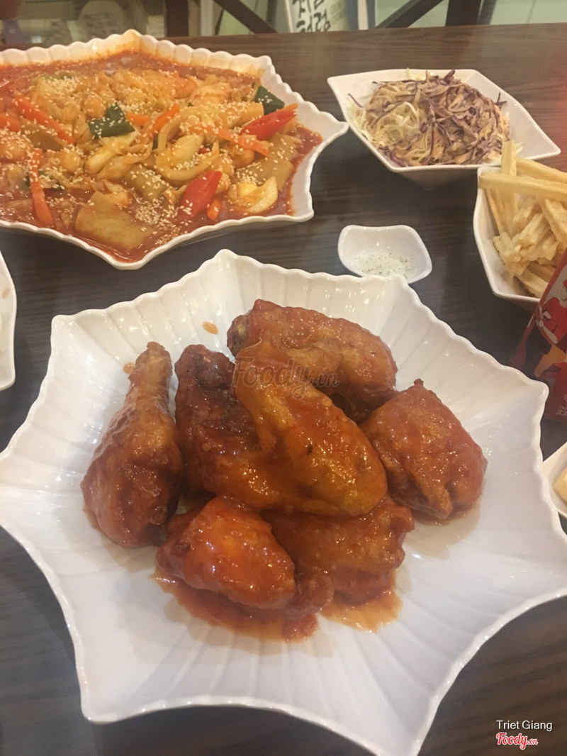 - Khá tốt Viết bình luận Thông tin & Bản đồ Báo lỗi vị trí Thời gian hoạt động Chưa mở cửa 14:00 - 23:00 Thích hợp Buổi sáng , Buổi trưa , Buổi xế , Buổi tối Giờ nhận khách cuối 09:30 PM Thời gian chuẩn bị Khoảng 5 - 7 phút Nghỉ lễ Không nghỉ lễ Thể loại Quán ăn Sức chứa 50 người lớn Phong cách ẩm thực Món Á , Món Hàn Phù hợp với Ăn gia đình , Hẹn hò , Họp nhóm , Ăn vặt , Takeaway - Mang về Phục vụ các món Thịt Gà , Gà rán , Gỏi , Fastfood - Thức ăn nhanh Giấy phép/chứng nhận Xem