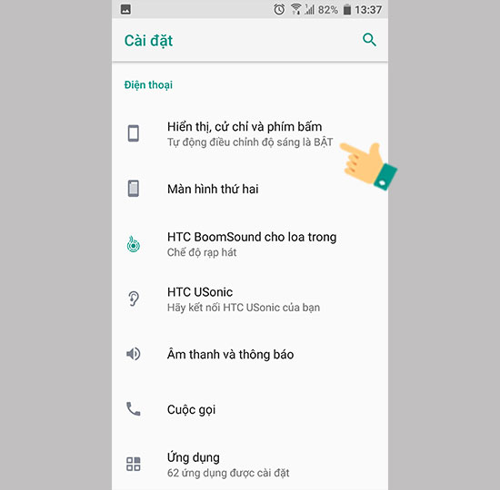Bước 2: Hiển thị, cử chỉ và phím bấm.