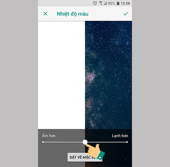 Bước 4: Kéo thanh nhiệt độ về Ấm hơn sao cho dịu mắt của bạn là được.