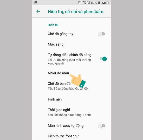 Bước 3: Chọn vào Nhiệt độ màu.