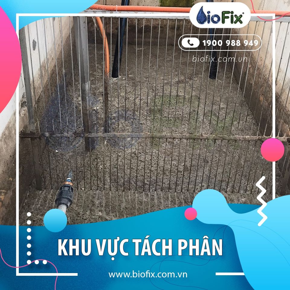 Thức ăn dư thừa, phân và nước tắm của heo thải ra hàng ngày, sẽ được thu gom và thay 2 ngày/ lần. Trong quá nước thải đi vào hệ thống xử lý, phân sẽ được thu gom bằng cách tách lại ở hố tách phân. Ở đây lại tiếp tục diễn ra quá trình phân hủy các chất hữu cơ. Làm mùi hôi sẽ phát sinh ở khu vực này. Vì vậy, khu vực này sử dụng chế phẩm vi sinh chế phẩm khử mùi Biofix Soc-S để ngăn chặn mùi hôi do các vi khuẩn có hại gây ra.