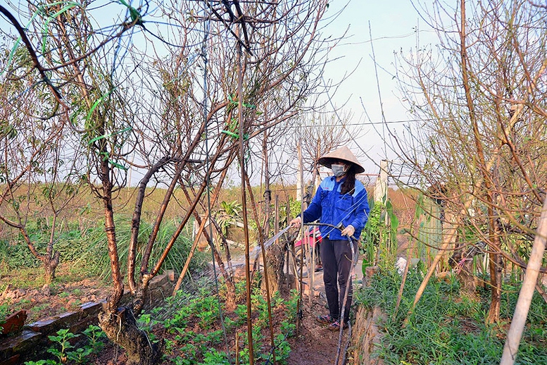 | Theo một chủ vườn tại Nhật Tân, đến thời điểm hiện tại những công đoạn cuối cùng để hoàn thành một cây đào bán ra thị trường đã xong. |