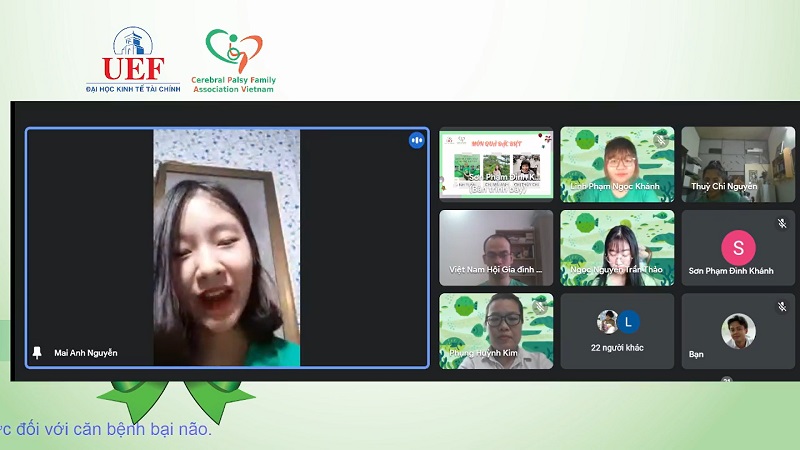 Trước đó vào ngày 5/10, các bạn sinh viên UEF đã có dịp tham dự hoạt động triển lãm online “Món quà đặc biệt” để tìm hiểu thông tin khoa học về chứng bại não cũng như những gương điển hình về các bạn CP (Cerebral Palsy - những người mắc chứng bại não) và các hoạt động của tổ chức CPFAV. Triển lãm đã thu hút hơn 900 lượt sinh viên đến tham quan.