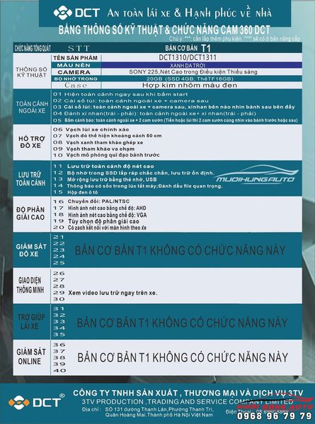 Thông tin của camera 360 độ DCT bản T1 tại Mười Hùng Auto: