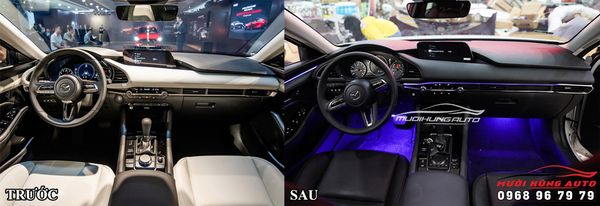 So sánh trước và sau khi độ đèn LED nội thất cho Mazda 3 2020