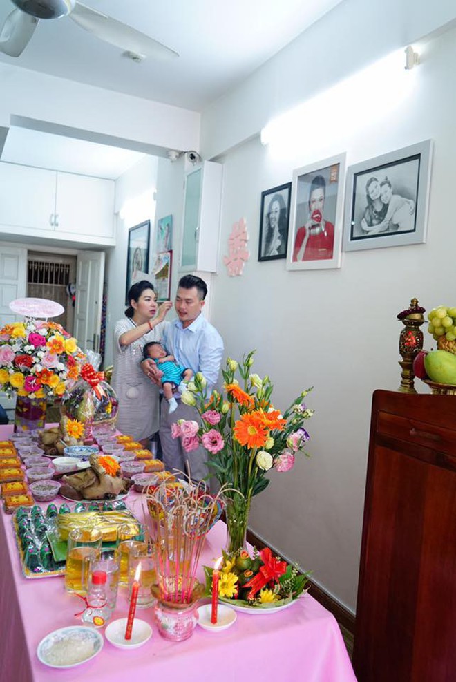 Lê Khánh lần đầu công khai cận mặt con trai đầu lòng trong ngày làm lễ đầy tháng.