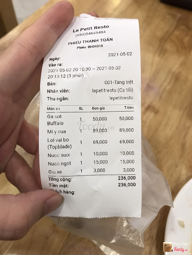 Song Diệu reviewed bằng iPhone 25/04/2021 19:40:59, 1.6 Le Petit Resto' - Beefsteak, Pizza & Pasta Chủ nhật mình đi ăn hai người, tới quán khoảng 18h30, lúc này quán chỉ có khoảng 3 bàn. Nhưng tầm 15p sau quán khá đông, khách tới không còn chỗ ngồi, phải ngồi ghép mặc dù bàn khá nhỏ. Tụi mình gọi 3 món: 1 steak thăn lưng 80g, 1 cá hồi nướng sốt chanh và 1 salad trộn. Gọi chung 1 lần nhưng các món ra cách nhau rất lâu, mình phải gọi và nhắc chị phục vụ 3, 4lần món mới ra, gọi chị nhắc lần nào chị cũng kêu món đang làm. Mình ngồi ghép chung với 2 chị nữa, cũng gọi món cá hồi như mình, gọi sau tầm 15p nhưng.... hai món cá hồi ra cùng lúc. Tức là ở quán làm theo món chứ không làm theo bàn. Đi ăn ngồi bàn ghép mà các món ra rất lâu, hai đứa chỉ biết ngồi nhìn nhau chờ món. Thêm vào đó cách phục vụ rất lạ. Các bàn tới sau nhưng lại được ra món trước. Mình gọi salad trộn nhưng được ra món sau bàn bên cạnh (bàn đó order xíu là có liền) Món không có gì xuất sắc cả: bò dai, khô và ướp muối nhiều nên khá mặn; bánh mì nướng bơ tỏi bị cứng; salad trộn vị rất gắt, chua nhiều; món cá hồi tạm ổn, vớt vát lại được xíu. Sau khi gọi tính tiền chị nhân viên tới giọng nhiệt tình: anh chị đi 1 xe máy đúng không ạ? Bọn mình cứ tưởng quán hỗ trợ gửi xe...nhưng không, quán tính thêm tiền gửi xe 3k vô bill luôn. Thật sự rất thất vọng khi thấy báo đăng bài khen rất nhiều...cho tới khi mình thử... Sẽ không quay lại!!!! ...Xem thêm